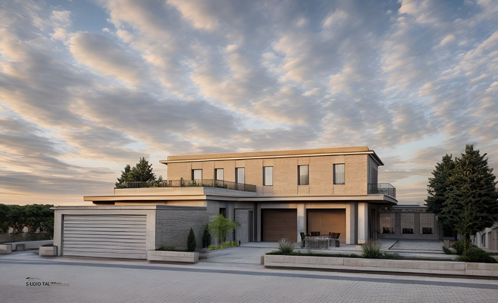 המבנה עצמו משדר מודרניות ואלגנטיות. משלב חומרים כמו קורות בטון, אבן טבעית, מעקה ברזל, פרופילים בלגיים ונגיעות עץ טבעי כשבתכנון הבית הונחו הדגשים לתכנון חללים גדולים ומרווחים שישמשו את המשפחה.